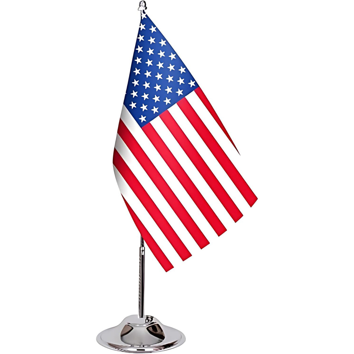 United States Table Flag 5.9 x 8.9 Inch – USA – US – American Desk Flag with 13 Inch Chrome Pole and 3.07 Inch Base – Deluxe Satin Fabric