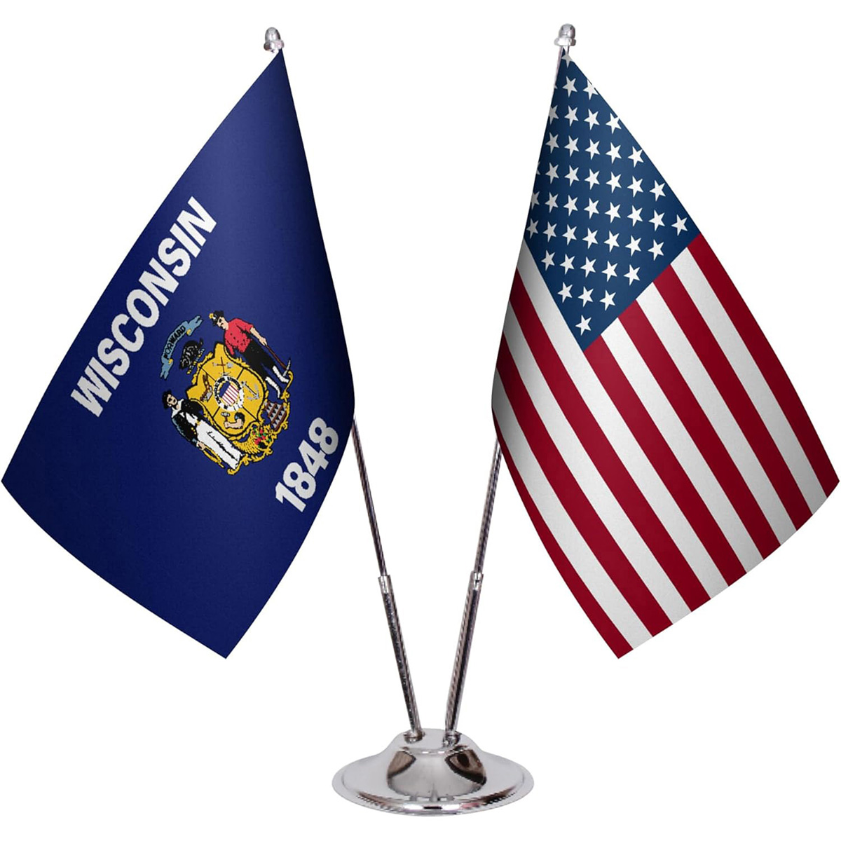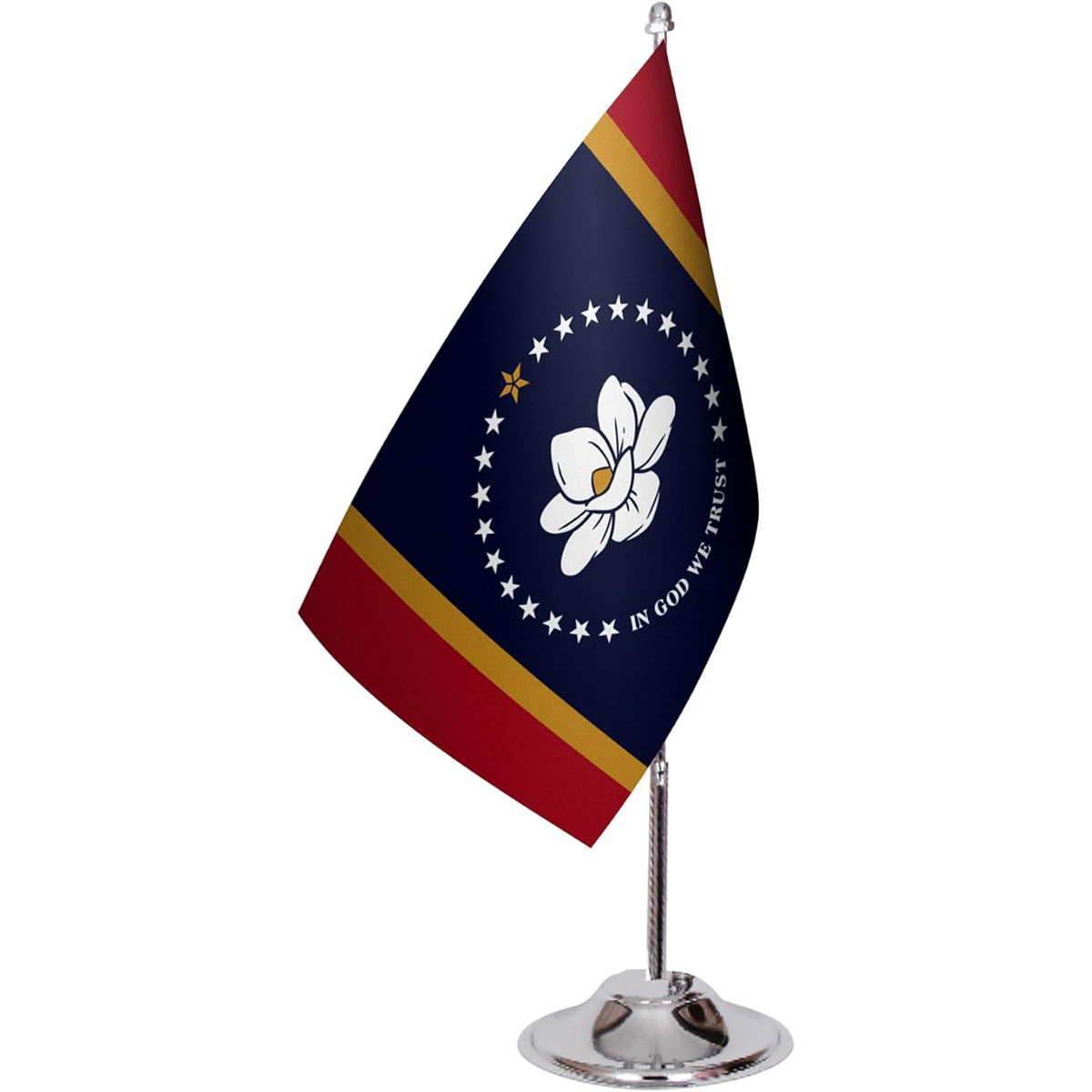 Premium U.S. State Desk Flags – 6" x 9" Satin Fabric with 13" Chrome Metal Pole & 3.07" Round Base (Michigan)