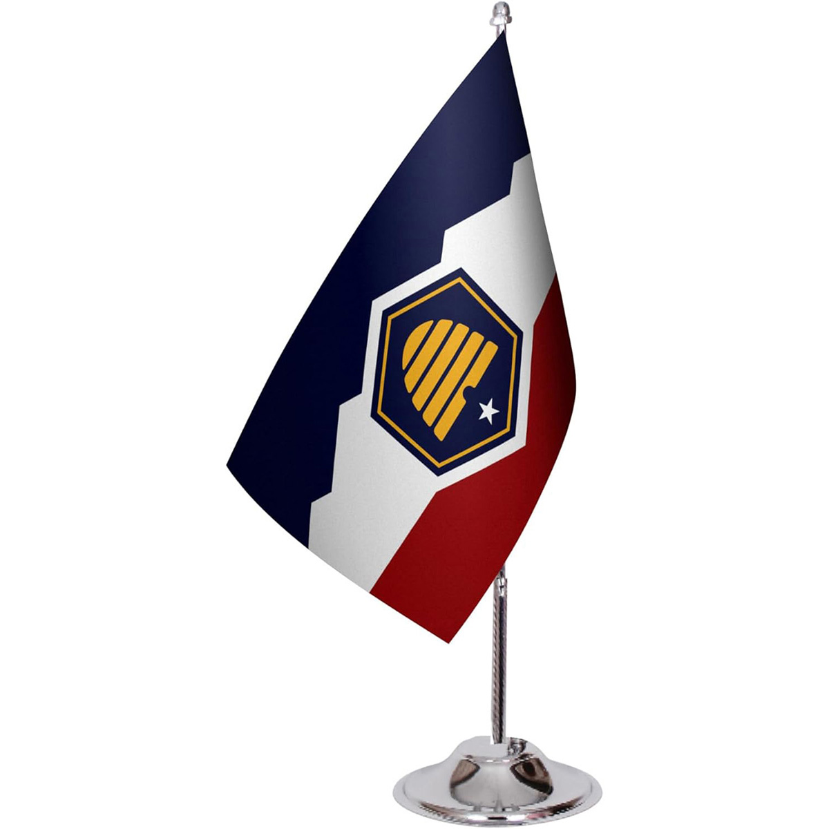 American & State Flag Desk Set – 6" x 9" Premium Satin Table Flags with Heavy Chrome Stand, Non-Tip Base (Minnesota)