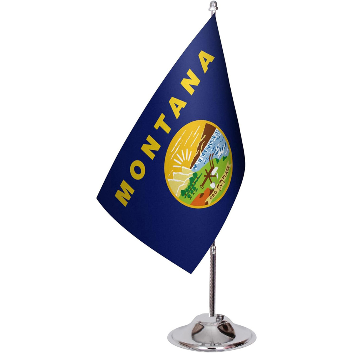 Premium U.S. State Desk Flags – 6" x 9" Satin Fabric with 13" Chrome Metal Pole & 3.07" Round Base (Illinois)